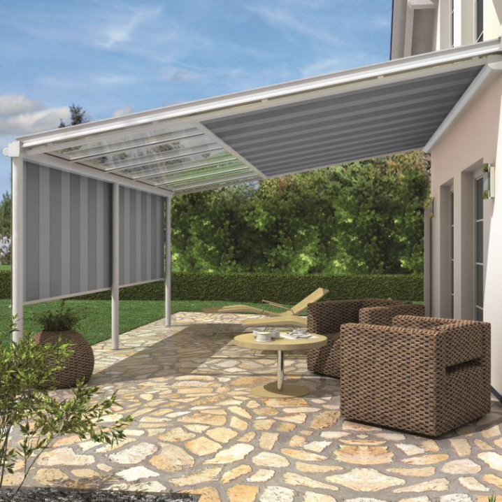 Als Erweiterung der Unterglasmarkise T200 fängt sie tief stehende Sonnenstrahlen ab und schenkt angenehme Lichtverhältnisse. In ihrer klassischen Aufgabe als Fenstermarkise hingegen sorgt sie auch im heißen Sommer für angenehm temperierte Räume. Praktisch, vielseitig und gleichzeitig elegant im Design - die schlanke Senkrechtmarkise F100. Die schlanke Senkrechtmarkise F100 mit ihrem äußerst kompakten Markisenkasten eignet sich hervorragend für die Montage unter der Regenrinne eines Terrassendaches. Ebenso lässt sie sich fast unsichtbar in enge Fensterlaibungen integrieren. Der aha-Effekt entsteht beim Ausfahren: Bis zu 18 qm Tuchfläche verbergen sich in dem kleinen Markisenkasten von gerade einmal 85 x 75 mm! Das bedeutet eine maximale Breite von 6.000 mm und einem Höchstausfall von 3.000 mm. Praktisch für die individuelle Terrassengestaltung: Die F100 ist sowohl mit seitlicher Seilführung als auch mit Schienenführung erhältlich.