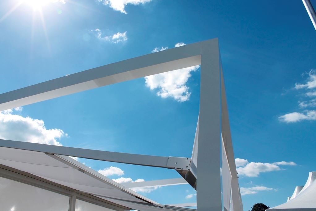 Ein weiterer Vorteil: Q.bus setzt der eigenen Kreativität keine Grenzen. Das System lässt sich individuell mit weiteren Seiten- oder Senkrechtmarkisen ausstatten und so zu einem "textilen Wintergarten" ausbauen - geeignet etwa als wettergeschützter Raucherbereich in der Gastronomie. Es können auch beliebig viele Q.bus-Systeme miteinander kombiniert werden.