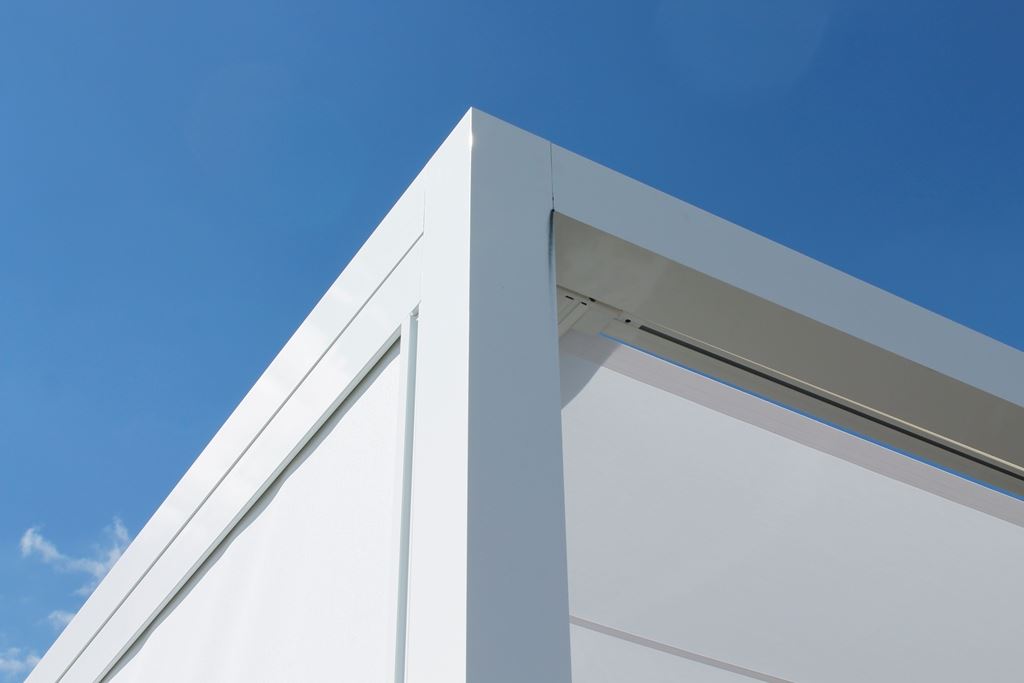 Als zuverlässiger Schutz vor Sonne, Wind und Regen stellt er eine hochwertige Alternative zu Pavillons und Sonnenschirmen dar. Der Q.bus verfügt sowohl über eine horizontale Dachmarkise als auch über eine Senkrechtmarkise, die sich individuell nach Sonnenstand und Windverhältnissen ausrichten lassen. Bei Q.bus mit Zip wird der Seitensaum der Dachmarkise mit einem Reißverschluss in den Schienen geführt, wodurch Windstabilität und Tuchspannung zusätzlich erhöht werden. Dach- und Senkrechtmarkise können unabhängig voneinander bequem per Funk gesteuert werden. Es ist aber auch möglich, sie per Knopfdruck aneinander zu koppeln und auf diese Weise ein Schrägdach zu bilden, das sich an einer Seite um bis zu einen Meter absenken lässt. Das ist gerade bei Regen praktisch: Das Regenwasser läuft durch die Schräge einfach nach vorne ab, die Feier im Freien kann ungestört fortgesetzt werden. Nützlich ist auch die optionale Sonnen- und Windautomatik, die die Markisentücher wie von Zauberhand dirigiert.