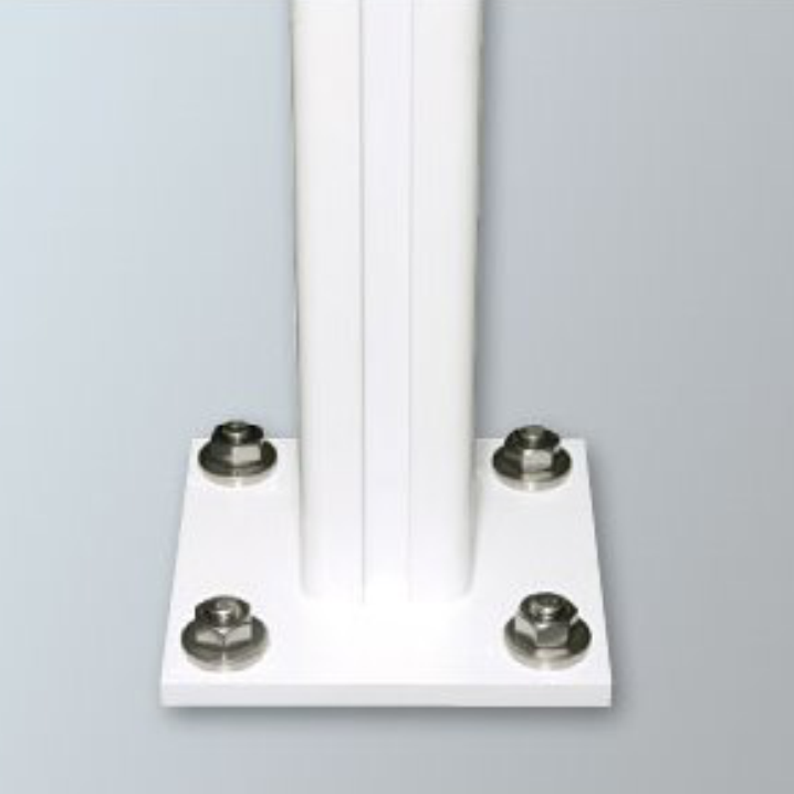 Die Schienenstützen bestehen aus einem Aluminium-Strangpressprofil und verfügen am oberen Ende über ein gelenkiges Kopfteil zur Verbindung an die untere Aufnahmenut der Führungsschiene. Den unteren Abschluss der Schienenstütze bildet ein Montagefuß zur Befestigung an eine Boden-Montageplatte. Wenn der freitragende Überstand 6.000 mm übersteigt sowie bei gekuppelten Führungsschienen, ist der Einsatz von zusätzlichen Schienenstützen notwendig.