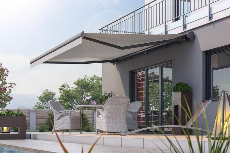 Mit ihrer robusten Technik und dem eleganten Design lassen sich Gelenkarmmarkisen je nach Bedarf leicht aus- oder einfahren und bieten zuverlässigen Schutz vor Sonne und Wärme. Ideal für Terrassen und Balkone.