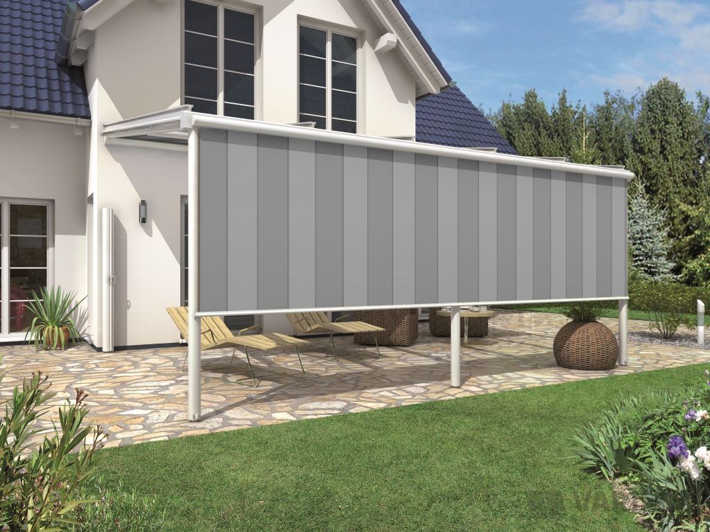 Als Erweiterung der Unterglasmarkise T200 fängt sie tief stehende Sonnenstrahlen ab und schenkt angenehme Lichtverhältnisse. In ihrer klassischen Aufgabe als Fenstermarkise hingegen sorgt sie auch im heißen Sommer für angenehm temperierte Räume. Praktisch, vielseitig und gleichzeitig elegant im Design - die schlanke Senkrechtmarkise F100. Die schlanke Senkrechtmarkise F100 mit ihrem äußerst kompakten Markisenkasten eignet sich hervorragend für die Montage unter der Regenrinne eines Terrassendaches. Ebenso lässt sie sich fast unsichtbar in enge Fensterlaibungen integrieren. Der aha-Effekt entsteht beim Ausfahren: Bis zu 18 qm Tuchfläche verbergen sich in dem kleinen Markisenkasten von gerade einmal 85 x 75 mm! Das bedeutet eine maximale Breite von 6.000 mm und einem Höchstausfall von 3.000 mm. Praktisch für die individuelle Terrassengestaltung: Die F100 ist sowohl mit seitlicher Seilführung als auch mit Schienenführung erhältlich.