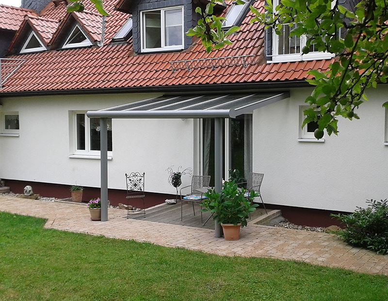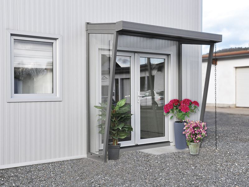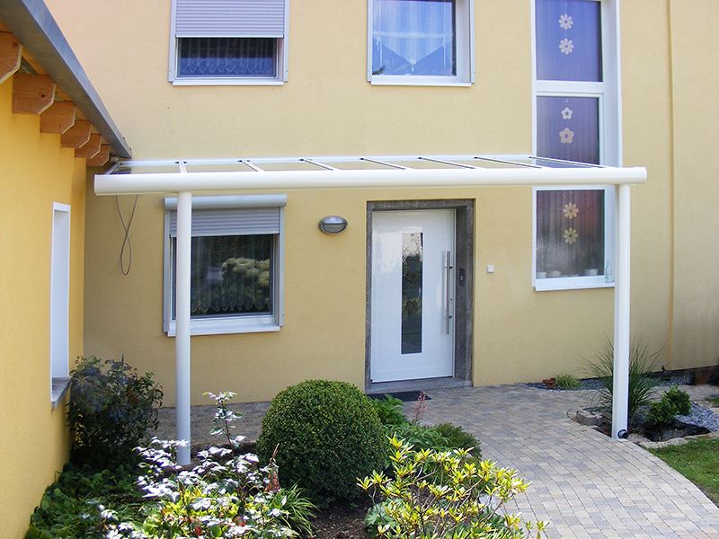 Das System Classic-Line eignet sich auch hervorragend als Überdachung Ihres Hauseingangs. Familie und Gäste werden so beim Eintreten effektiv vor Nässe und Unwetter geschützt. Der Aufbau des Vordaches ist variabel und passt sich auch Ihrem Eingangsbereich an!